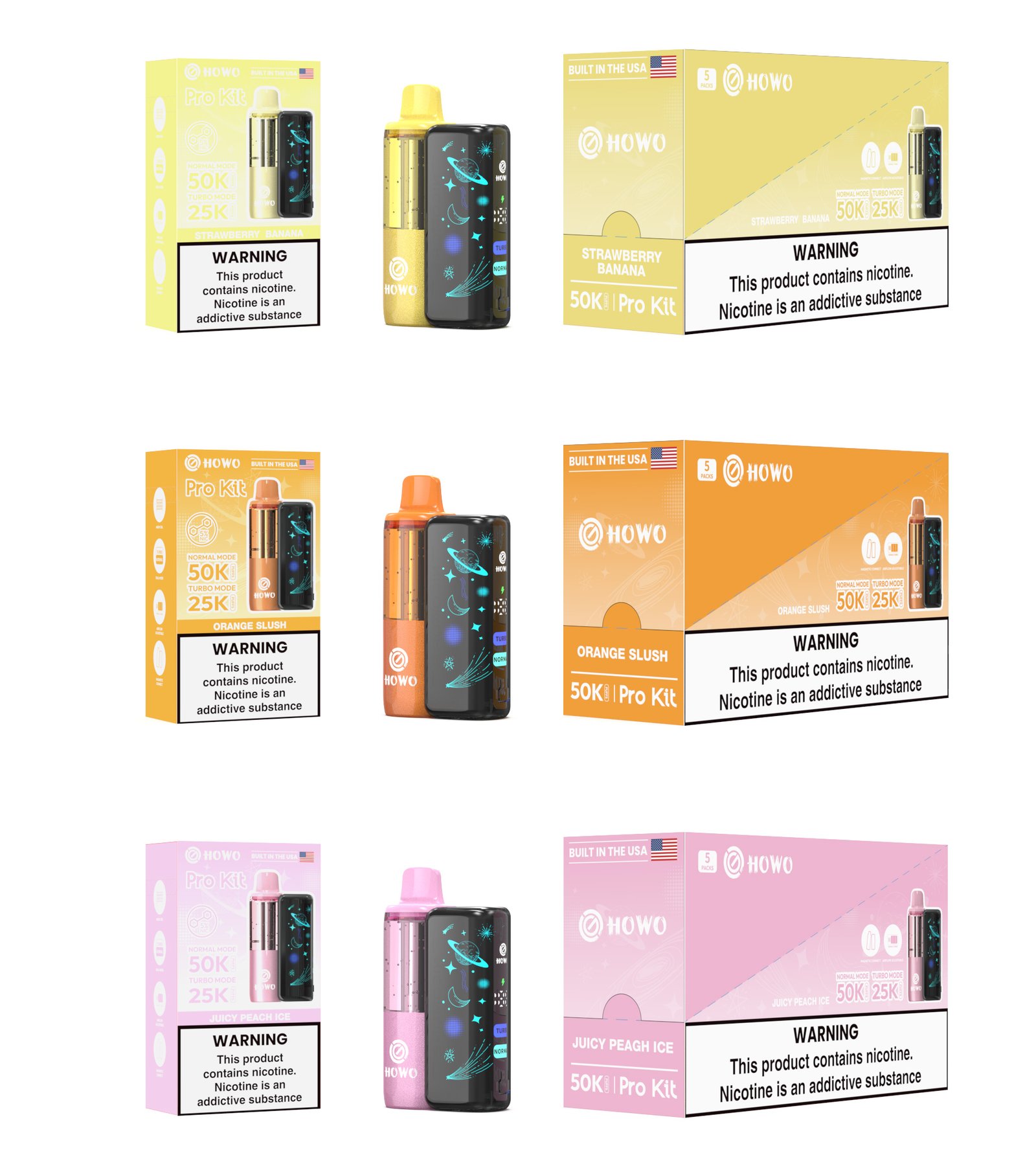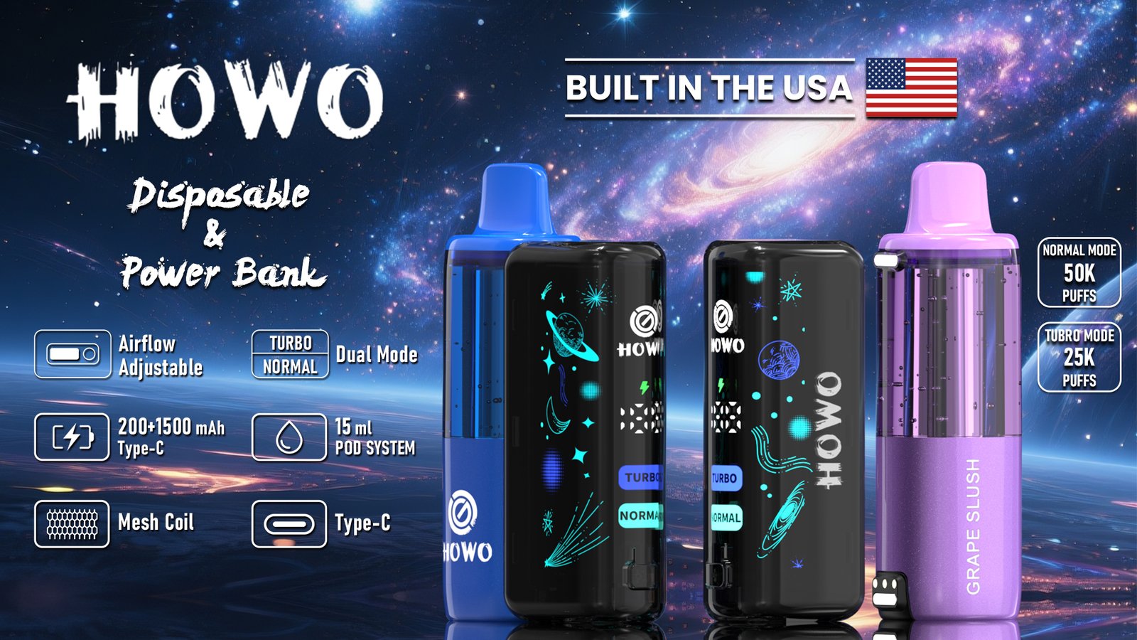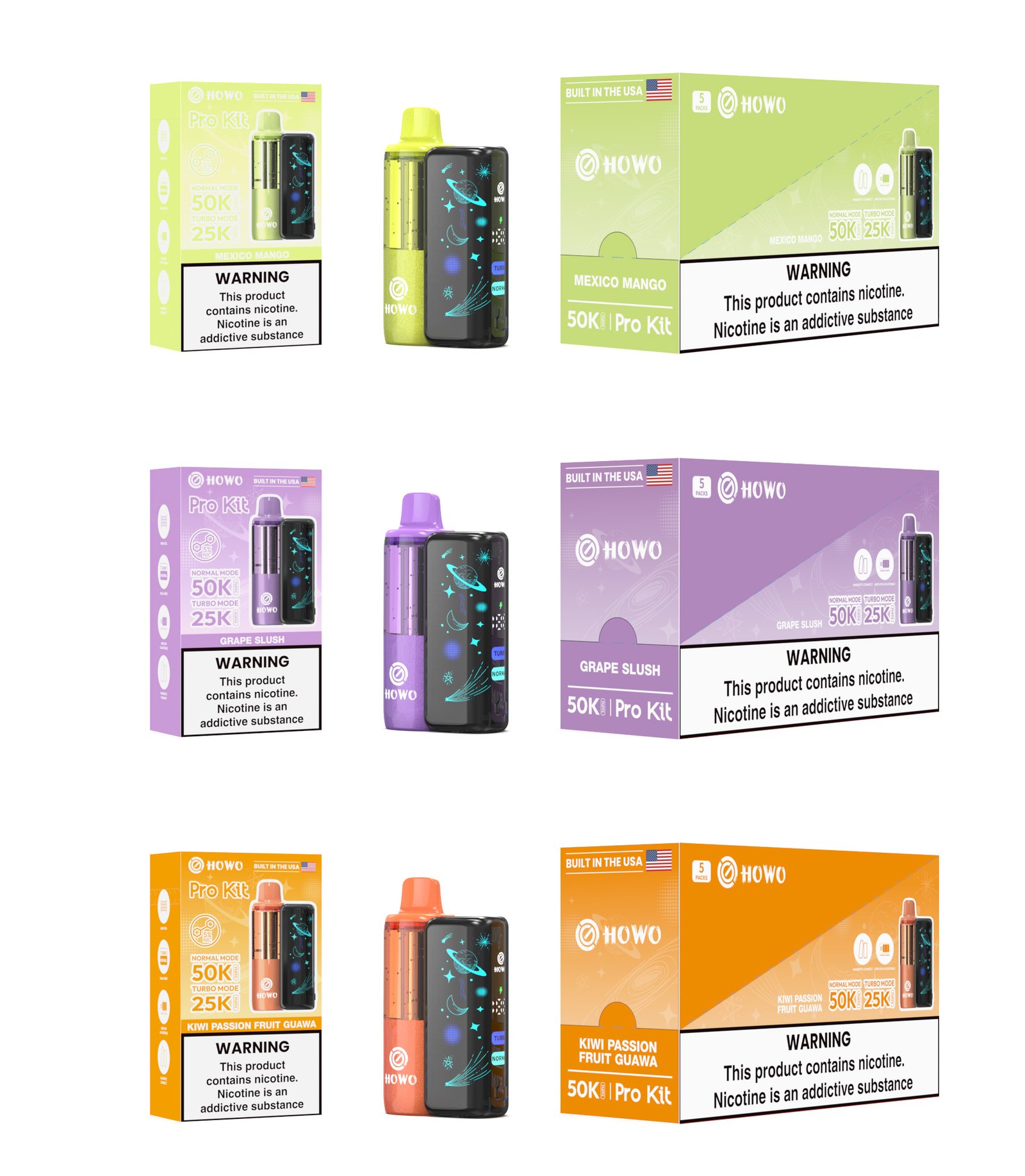 The HOWO PRO KIT is designed for users who want strong performance, flexible airflow control, and long-lasting power. Its visible tank, curved display, and dual-mode output make every session smooth and satisfying.